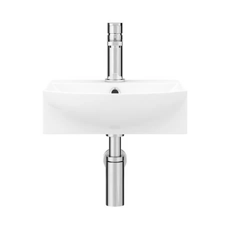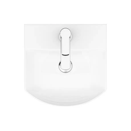 The eye catching luxury Arezzo compact basin with one tap hole has a stylish contemporary shape, provides you with a handy space-saving solution for your cloakroom or en-suite. Designed to be wall hung or mounted onto a worktop. Manufactured from high quality vitreous china with a gloss white finish. Some small dimensional variation may occur due to manufacturing tolerances. Waste not included.