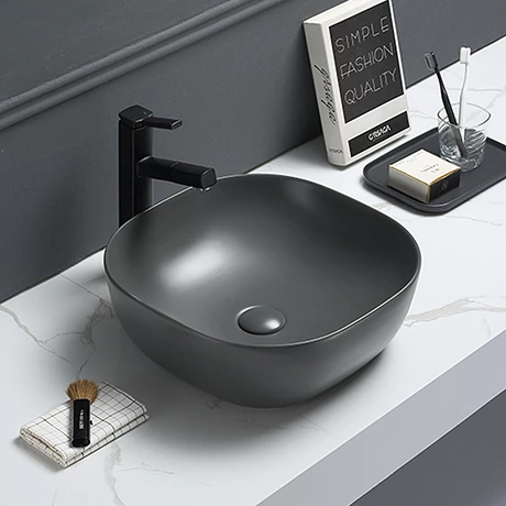 Arezzo 425 x 425mm Matt Dark Grey Coloured Curved Square Counter Top Basin