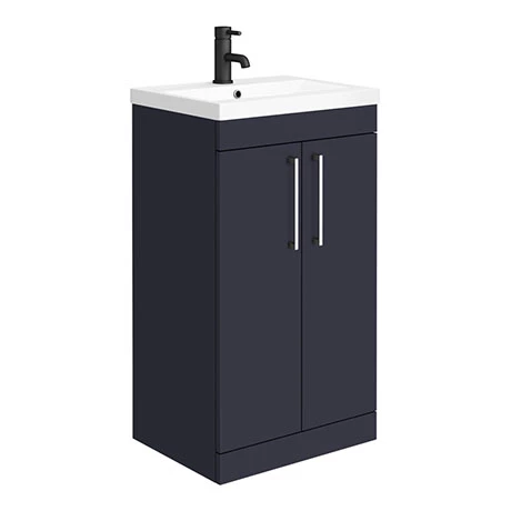 Arezzo 500 Matt Blue Floor Standing Vanity Unit with Ceramic Mid-Edged Basin + Polished Chrome Handles