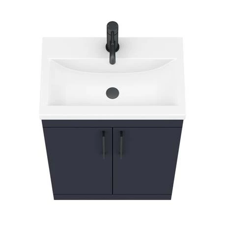 Arezzo 600 Matt Blue Floor Standing Vanity Unit with Ceramic Mid-Edged Basin + Matt Black Handles