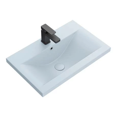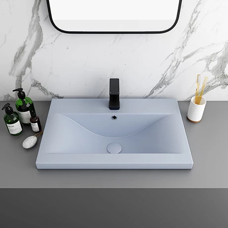 The eye catching luxury Arezzo matt blue coloured inset basin with one tap hole has a stylish contemporary rectangular shape, perfect for creating a boutique feel in your bathroom. Designed to be mounted onto a worktop console or vanity unit. Manufactured from high quality vitreous china with a matt pastel blue finish. Some small dimensional variation may occur due to manufacturing tolerances. Waste not included.