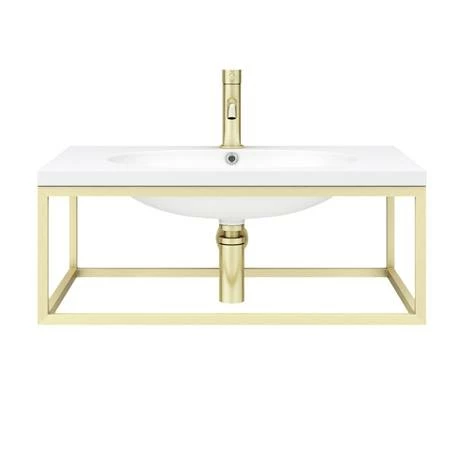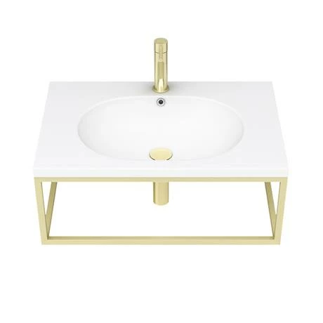 Arezzo 700mm Wall Hung Stone Resin Basin with Brushed Brass Towel Rail Frame