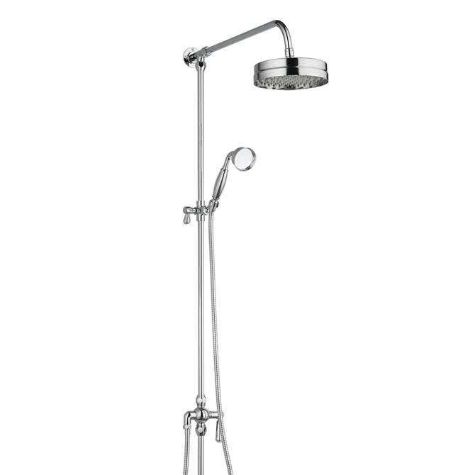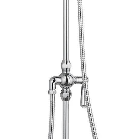 This classically styled polished chrome Arezzo rigid riser kit with overhead shower rose. This elegant rigid riser has a built-in diverter to switch water flow between the fixed head or hand held shower.