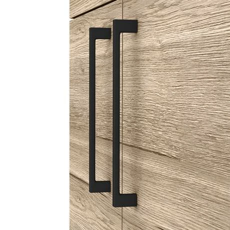 The contemporary rustic oak effect Arezzo furniture range, displays striking distressing with knots, deep cracks and grain to recreate a natural, authentic look. This 500mm wide vanity unit is perfect for renewing the style in any bathroom. It’s stylish modern design hides all unsightly pipework creating a neat modern look. A internal shelf provides generous storage space for your toiletries, helping to keep your bathroom clutter free. Cabinet features eye-catching contrasting modern matt black square bar handles.