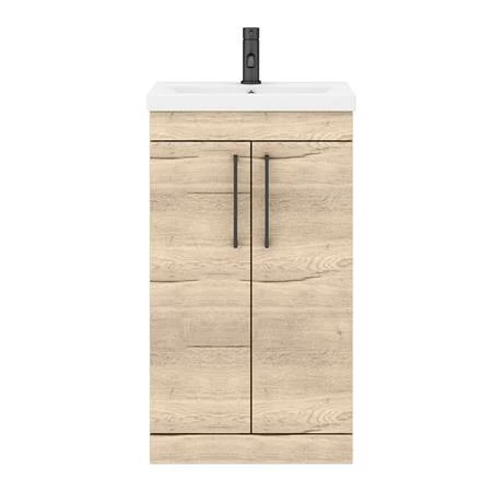 Arezzo 500 Rustic Oak Effect Floor Standing Vanity Unit with Ceramic Mid-Edged Basin + Matt Black Handles