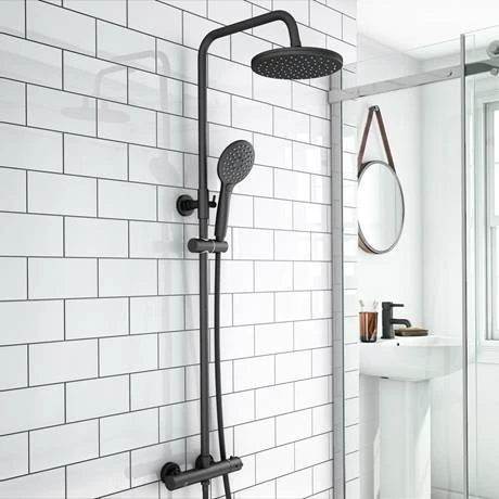 (1) Arezzo Matt Black Modern Round Thermostatic Shower
