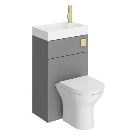 Arezzo Matt Grey Combined Two-In-One Wash Basin and Toilet with Brushed Brass Flush (500mm Wide x 300mm)