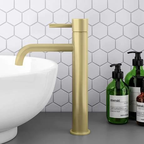 Arezzo Round Brushed Brass High Rise Mono Basin Mixer Tap