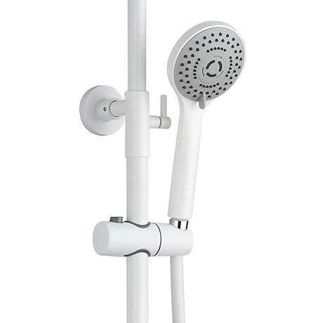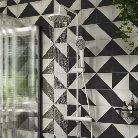 The Arezzo Matt White complete thermostatic shower set offers both the flexibility of a lightweight multi-function spray pattern shower handset and the extravagance of a fixed round overhead drencher. This premium matt white thermostatic shower comes complete with the newest ceramic disc technology and is easy to install. Featuring shower fixtures in a contemporary round design, it will make a sophisticated centrepiece in your wet room or bathroom. Both shower heads have nozzles than can be rubbed clean to make limescale removal quick and easy.
