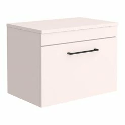 Arezzo 600 Matt Pink Wall Hung Vanity Unit with Worktop + Matt Black Handle (Excludes Basin)