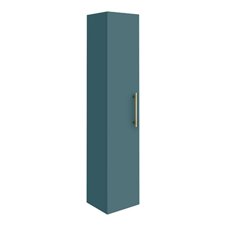 The Arezzo matt teal green Industrial style bathroom furniture range combines up to date looks with practical storage. Features a soft close door and provides plenty of space for toiletries, the Arezzo wall hung tall storage cabinet is perfect for adding modern style to any bathroom. Supplied with a on-trend round brushed brass knurled detail handle, great for creating an eye catching industrial look in your bathroom. Wall fixings included.