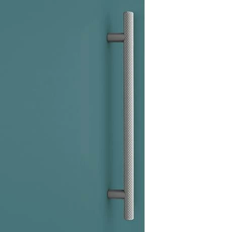 - Round knurled industrial style chrome bar handle